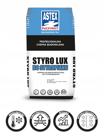 КЛЕЙ ДЛЯ КРЕПЛЕННЯ ПІНОПОЛІСТИРОЛУ СІРИЙ ASTEX STYRO-LUX 25КГ ПІДДОН 54 МІШКИ
