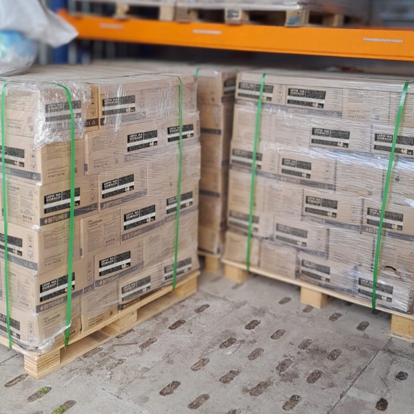 Битумный горячий клей модифицированный упаковывается в два вида материалов: пакет полиэтилен и картон. Картон следует удалить, но полиэтиленовый пакет можно расплавить вместе с товаром.
