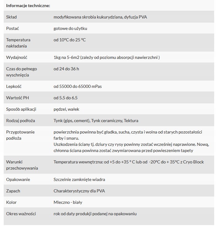 Ready for use made of the highest quality starch and PVA emulsion Properties: easy to apply, has long opening time and increased initial binding force: gluing contract wallpapers in public facilities. Рекомендуется для: приклеивание тяжелых текстильных и виниловых обоев на ткани и непреодолимого фундамента (350 - 550 г/м2)