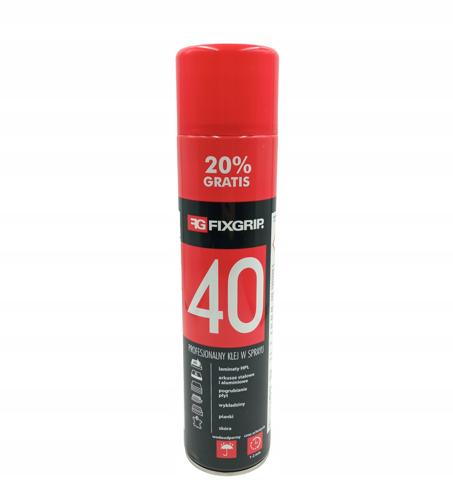 FIXGRIP 40 — высокоэффективный, многофункциональный аэрозольный клей исключительного качества. Этот специально разработанный продукт представляет собой негорючий, чувствительный к давлению клей для ПВХ на основе растворителя, доступный в канистрах емкостью 600 мл, 22 и 110 литров.