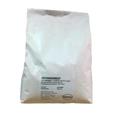 Клей на основе ЭВА (этиленвинилацетата) в гранулах натурального цвета, предназначенный для кромкооблицовочных станков. Продается в мешках по 5 кг. Ранее известный как Dorus Q 611 natur.