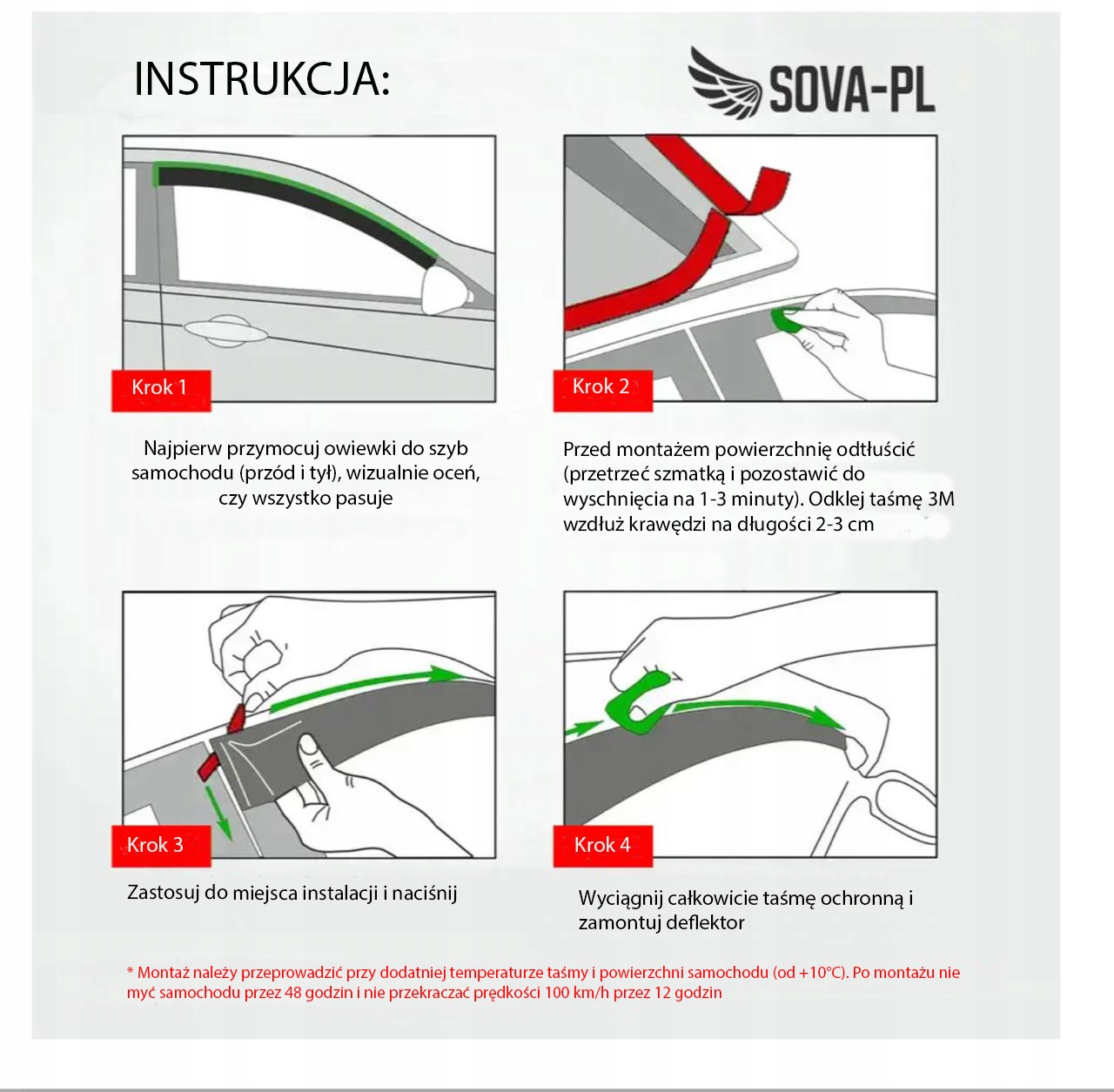 *Установку следует производить при положительной температуре ленты и поверхности автомобиля (от +10°С). После установки не мойте автомобиль в течение 48 часов и не превышайте скорость 100 км/ч в течение 12 часов