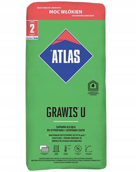 ATLAS GRAWIS U производится в виде сухой смеси цементного вяжущего высочайшего качества, заполнителей и специально подобранных модифицирующих добавок.