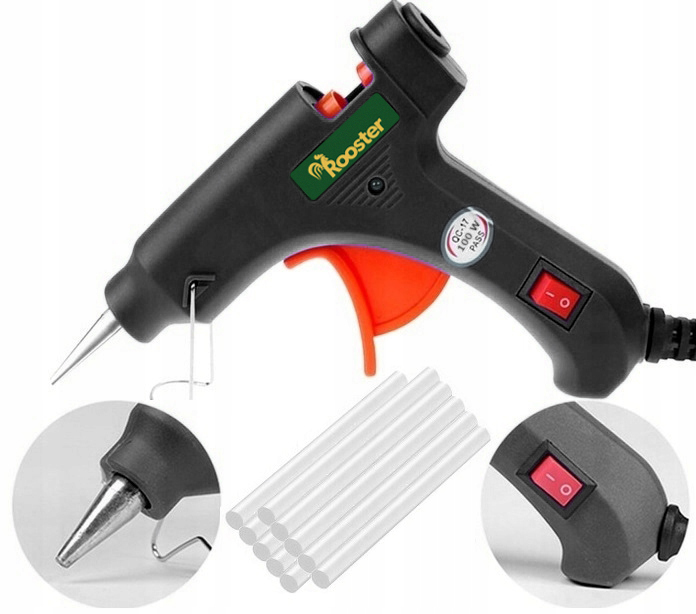 ГОРЯЧИЙ КЛЕЙНЫЙ ПИСТОЛЕТ ROOSTER КЛЕВОЙ ПИСТОЛЕТ МОЩНОСТЬ 25 Вт + 10 БЕСПЛАТНЫХ КЛЕЕВЫХ СТОЙКОВ