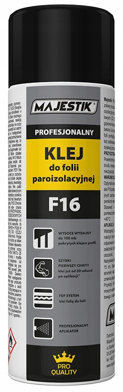 Majestik F16 - это профессиональный аэрозольный клей, предназначенный для прикрепления паровской барьерной фольги и мембран для стальных профилей (CD, UD, CW, UW) в гипсовых и картонных зданиях, для склеивания фольги для бетона или дерева и для склеивания фольги. Пол.