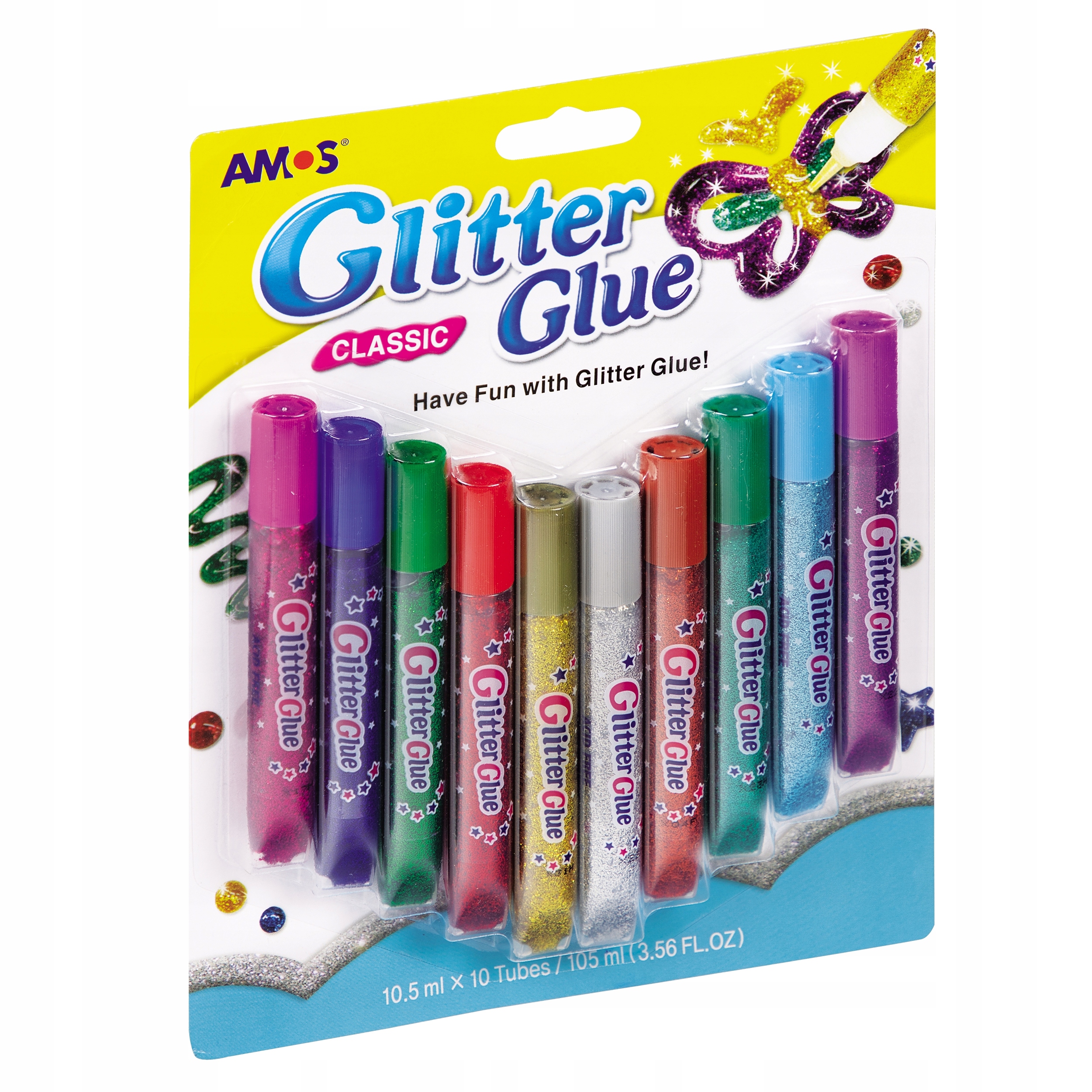 KLEJ W PŁYNIE Z BROKATEM GLITTER GLUE 10 kol. AMOS