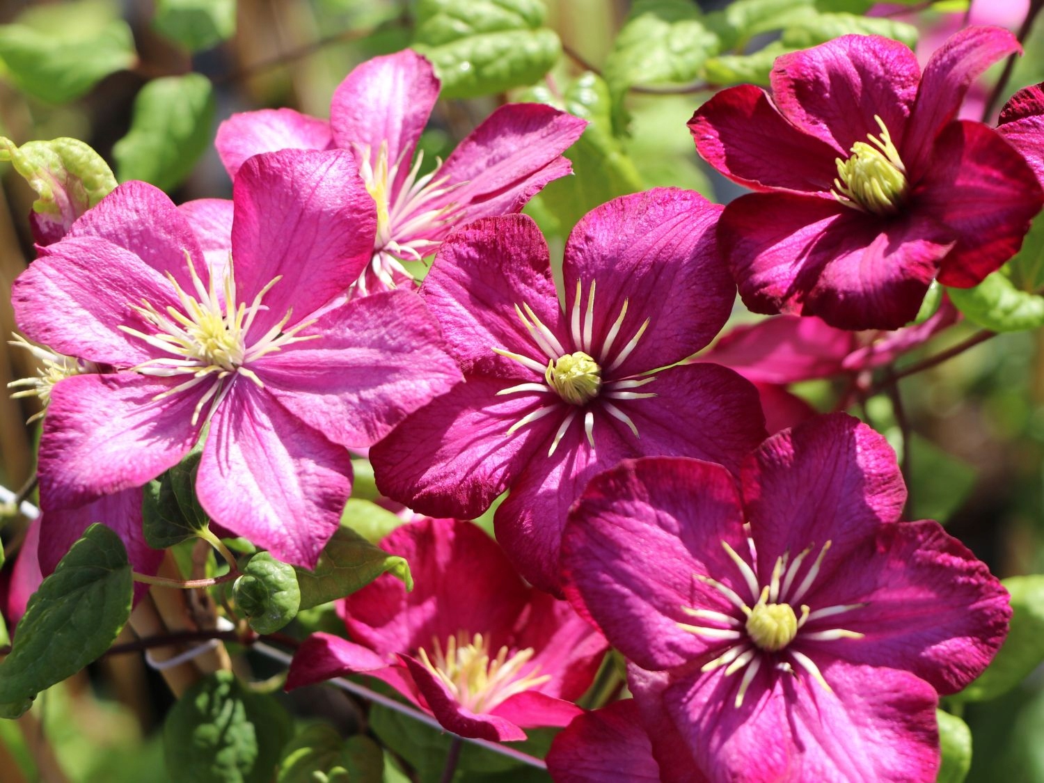 Клематис «CLEMATIS VILLE DE LYON» — декоративное многолетнее растение. Период цветения начинается в июне и продолжается до сентября. Затем появляются цветы интенсивного малинового цвета с контрастными желто-золотистыми тычинками. Клематис взбирается на естественные и искусственные опоры, встречающиеся на его пути, что придает ему необыкновенный визуальный эффект.