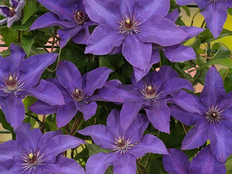 - Это лиана, вырастающая до 2-2,5 м в высоту. Цветки крупные, слегка бархатистые, фиолетово-темно-синие, с белой полосой внизу и фиолетово-красными тычинками, цветут с июня по ноябрь. Лучше всего цветет на хорошо освещенных, солнечных и плодородных, богатых гумусом, умеренно влажных, хорошо дренированных, нейтральных, слабокислых почвах. Растение красиво смотрится как в саду, так и в горшках на балконе или террасе.