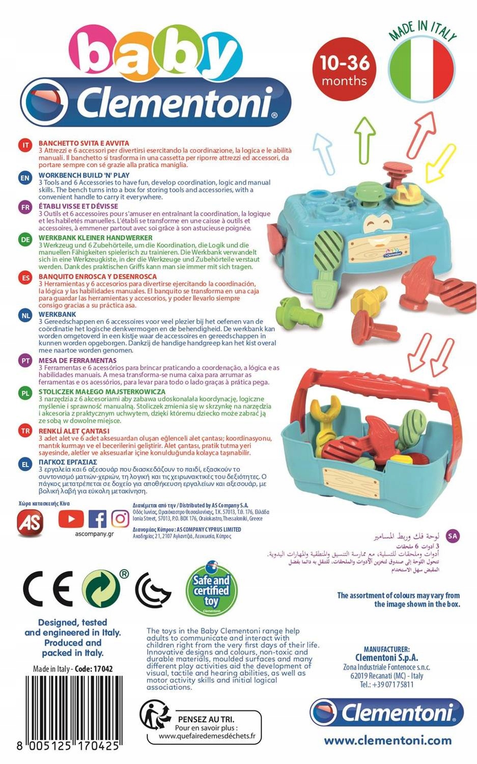 3 инструмента с 6 аксессуарами для развлечения и улучшения координации, логического мышления и ловкости рук. Стол превращается в ящик для инструментов и аксессуаров с практичной ручкой, благодаря которой ребенок сможет брать его с собой куда угодно.
