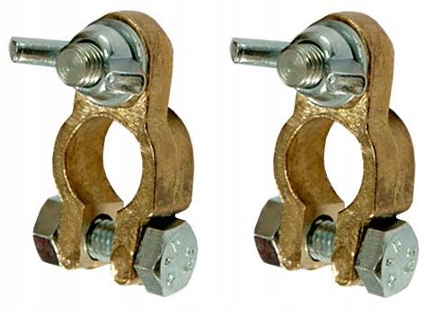 Зажимы из латуни, предназначенные, в частности: для подключения аккумулятора к электродвигателю.
