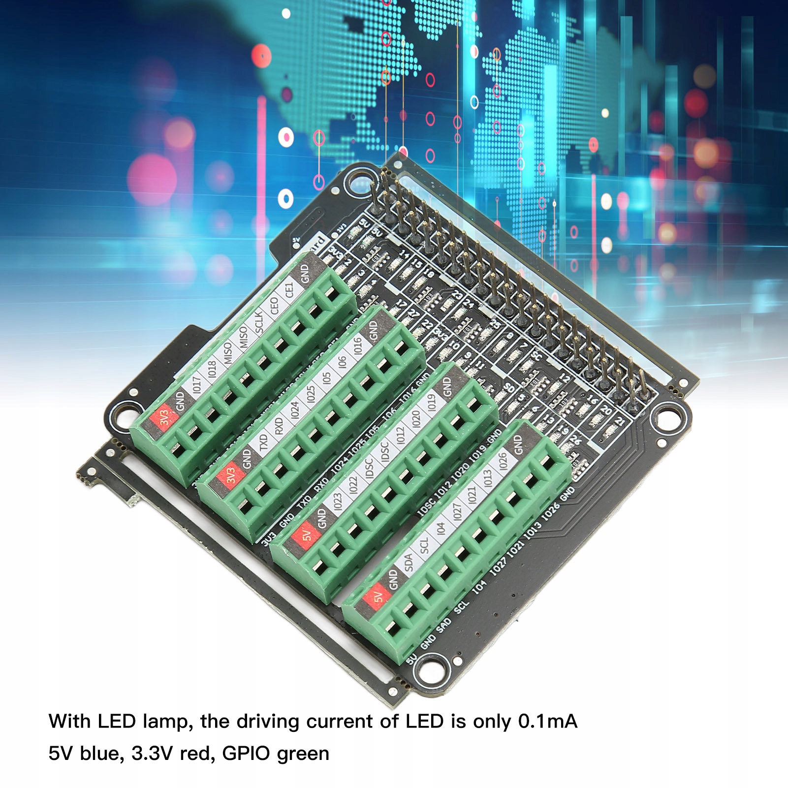 Клеммный блок со светодиодной подсветкой, модуль клеммного блока 3,3 В, 3 А для RPi A+3A+B+2B 3B 3B+4B