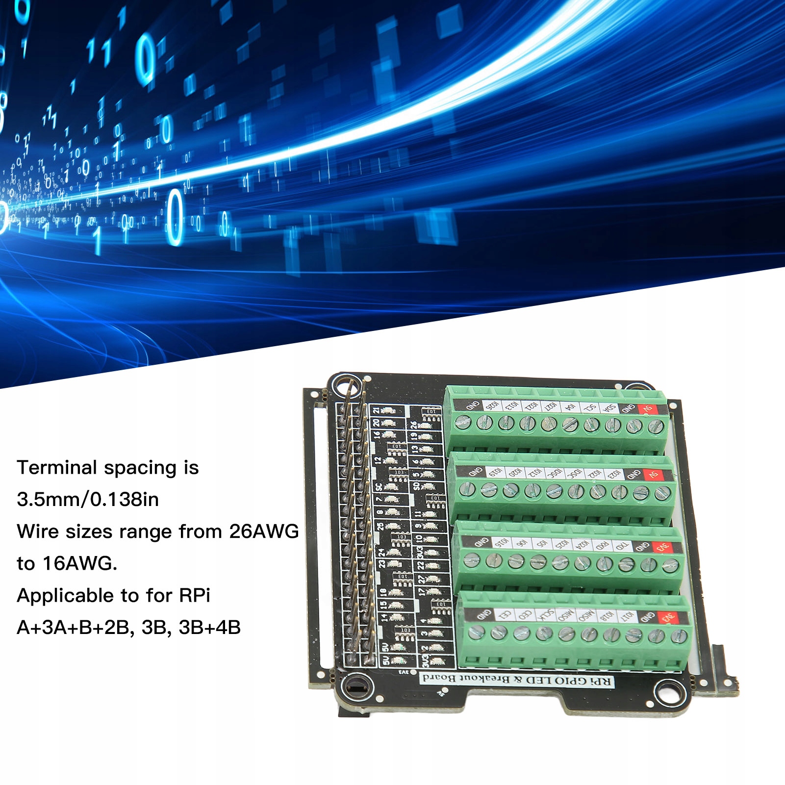 2. Область применения: Клеммный блок применим к RPi A+3A+B+2B, 3B, 3B+4B и т. д.
