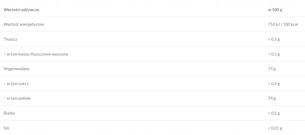 Хотя продукт содержит углеводы (в основном полиолы), количество сахаров минимально (< 0,5 г/100 г), поэтому сироп не вызывает типичных «сахарных скачков».
