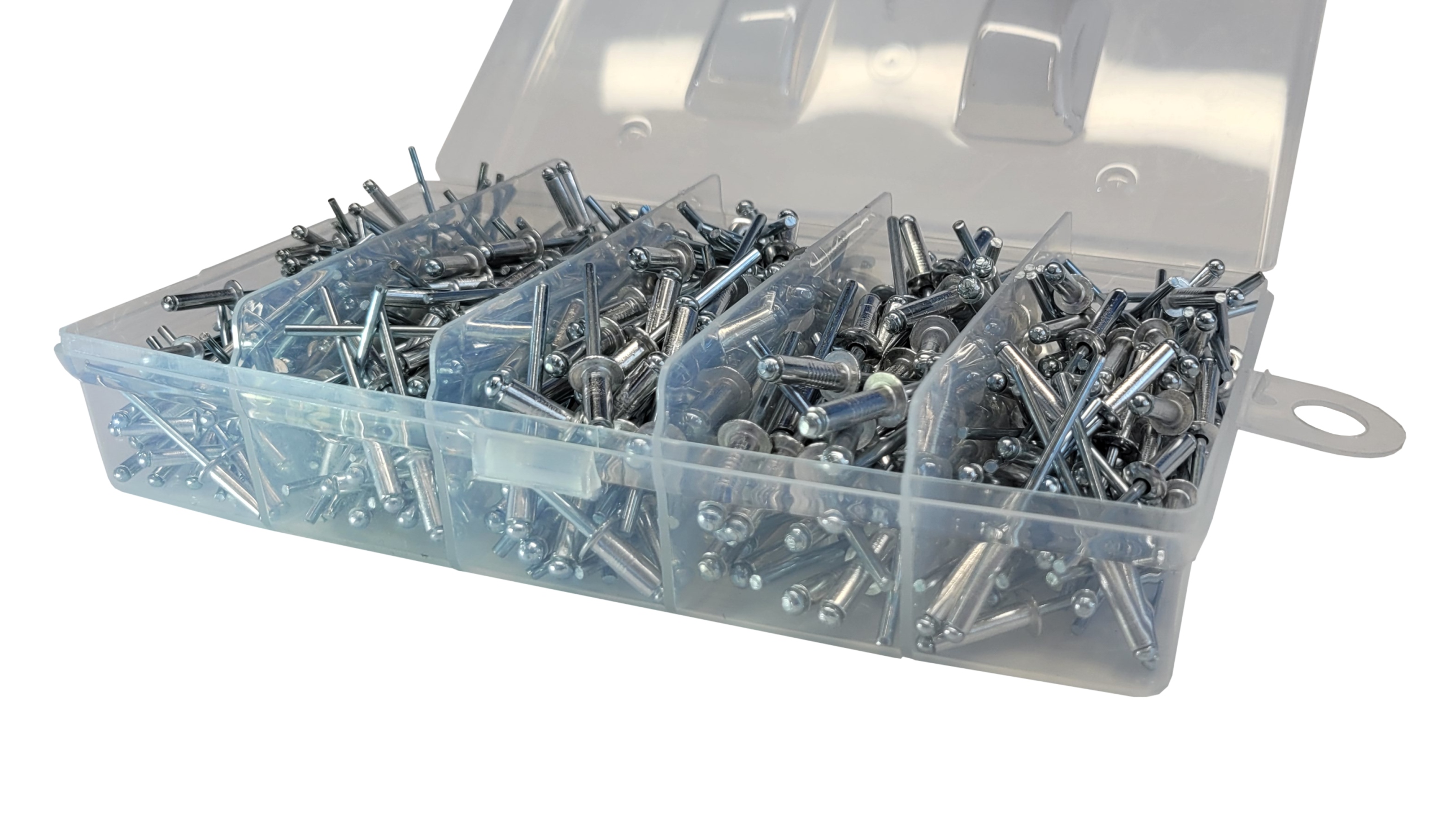 НАБОР АЛЮМИНИЕВЫХ ЗАКЛЕПОК В ОРГАНАЙЗЕРЕ 450 ШТ.