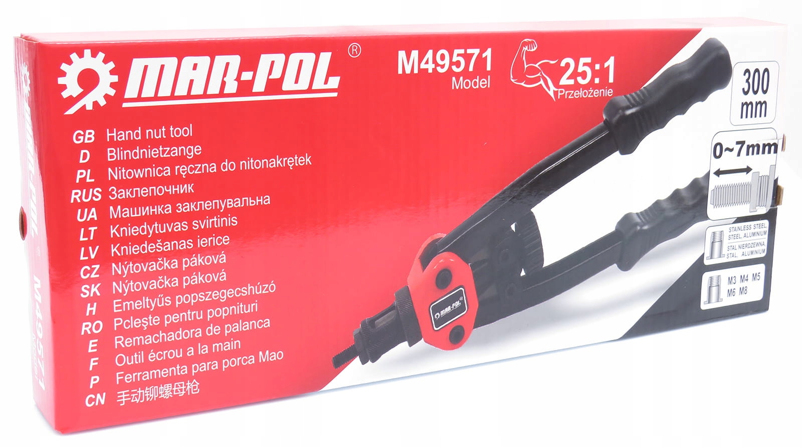 Ручной заклепочник для заклёпок-гаек от известного производителя MAR-POL широко применяется в сервисных, автомобильных и монтажных работах.