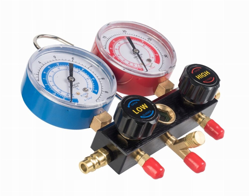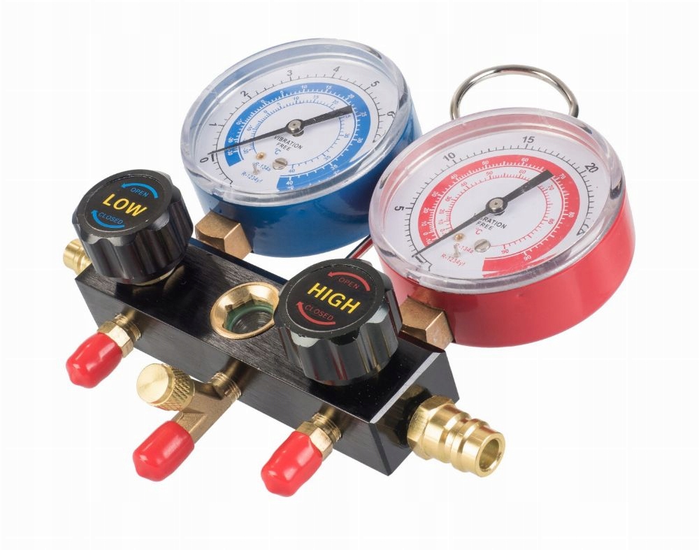 Манометры используются для поиска утечек или проверки давления в системах кондиционирования воздуха, содержащих хладагент R134a.