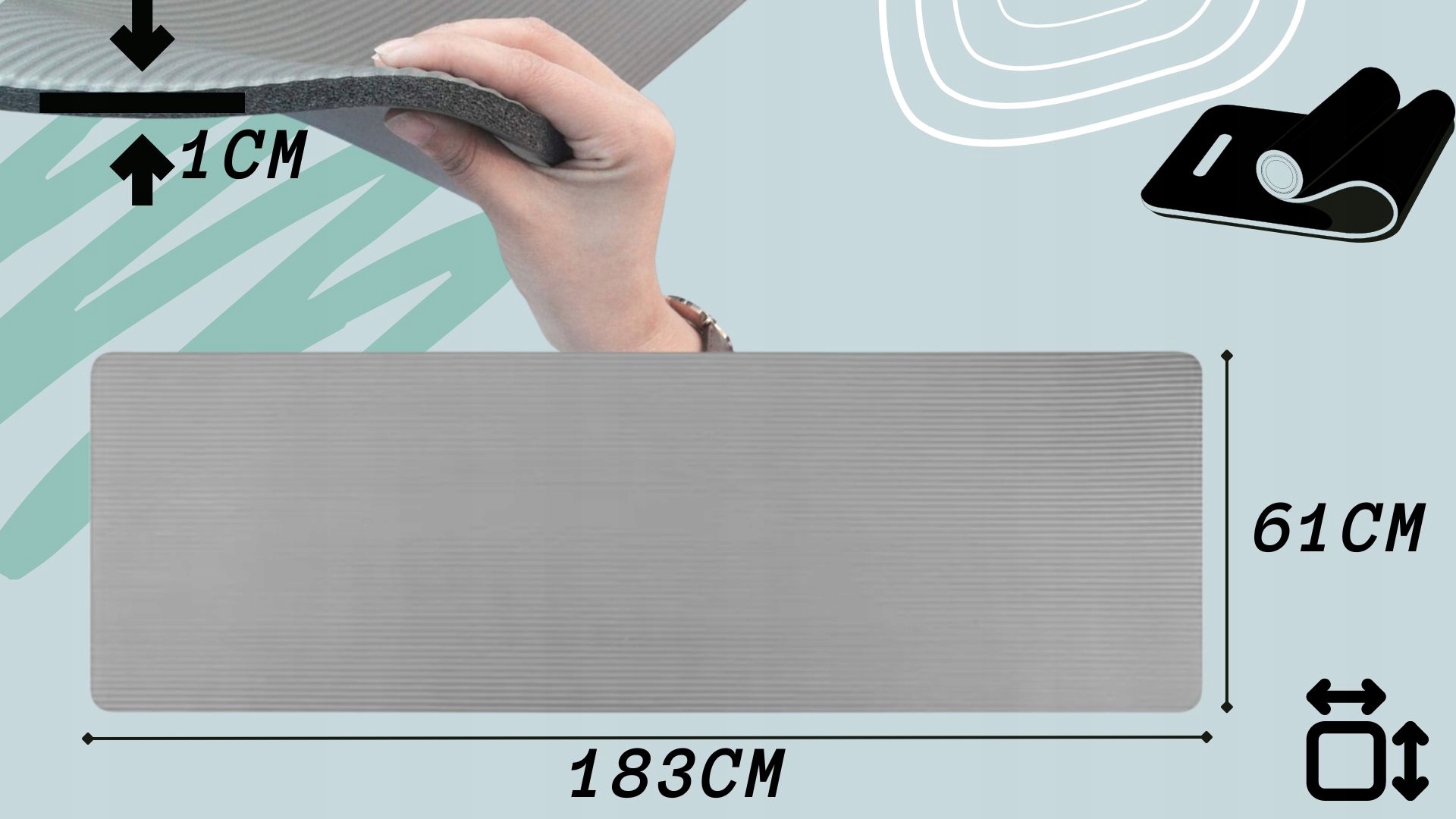 ➡️ Коврик для упражнений серый, размеры 183х61 см, толщина 1 см