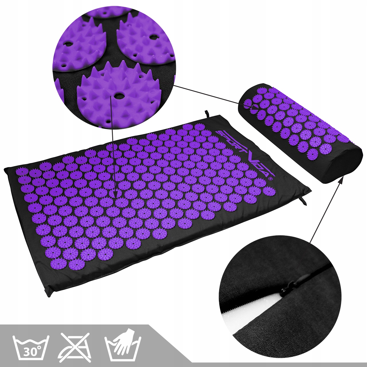 Коврик с дополнительной подушкой дляточечного массажа с шипами – изделие, которое идеально соответствует потребностям людей, ищущих релаксацию и расслабление b>. Вы можете использовать его каждый день в течение десятка или нескольких десятков минут. Лежание на спине позволяет уменьшить мышечное напряжение и снизить уровень стресса. Благодаря тому, что коврик оснащен множеством массажных точек, уже через несколько минут вы почувствуете ощущение успокаивающего тепла и почувствуете себя намного лучше. Тысячи шипов на поверхности коврика стимулируют ткани выделять эндорфины, которые оказывают обезболивающее действие, принося облегчение больным и уставшим мышцам. Систематическое употребление оказывает благотворное воздействие на здоровье