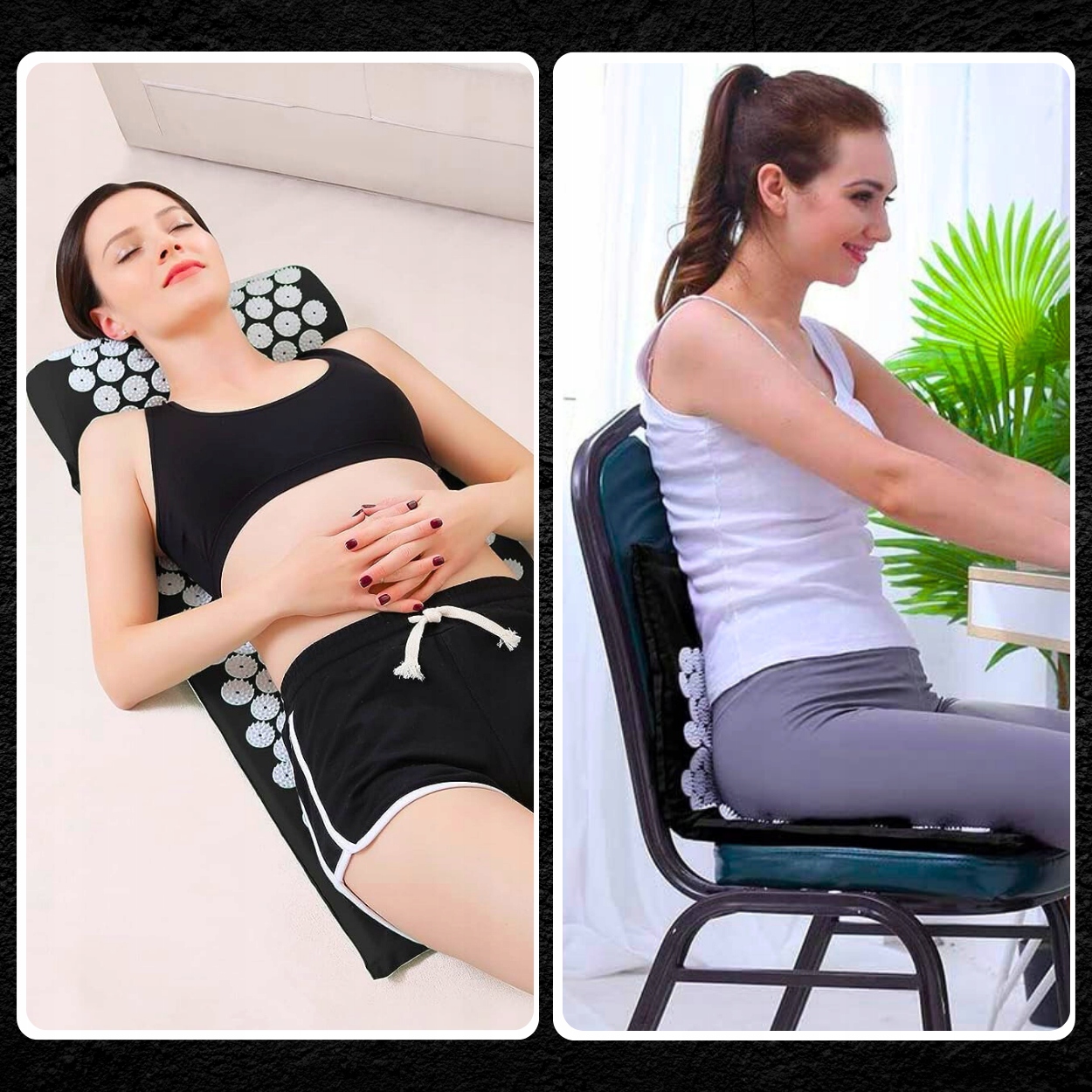 Обязательно выбирайте классический точечный коврик с подушкой.Он улучшит работу вашего организма, улучшит самочувствие и снимет мышечные боли.