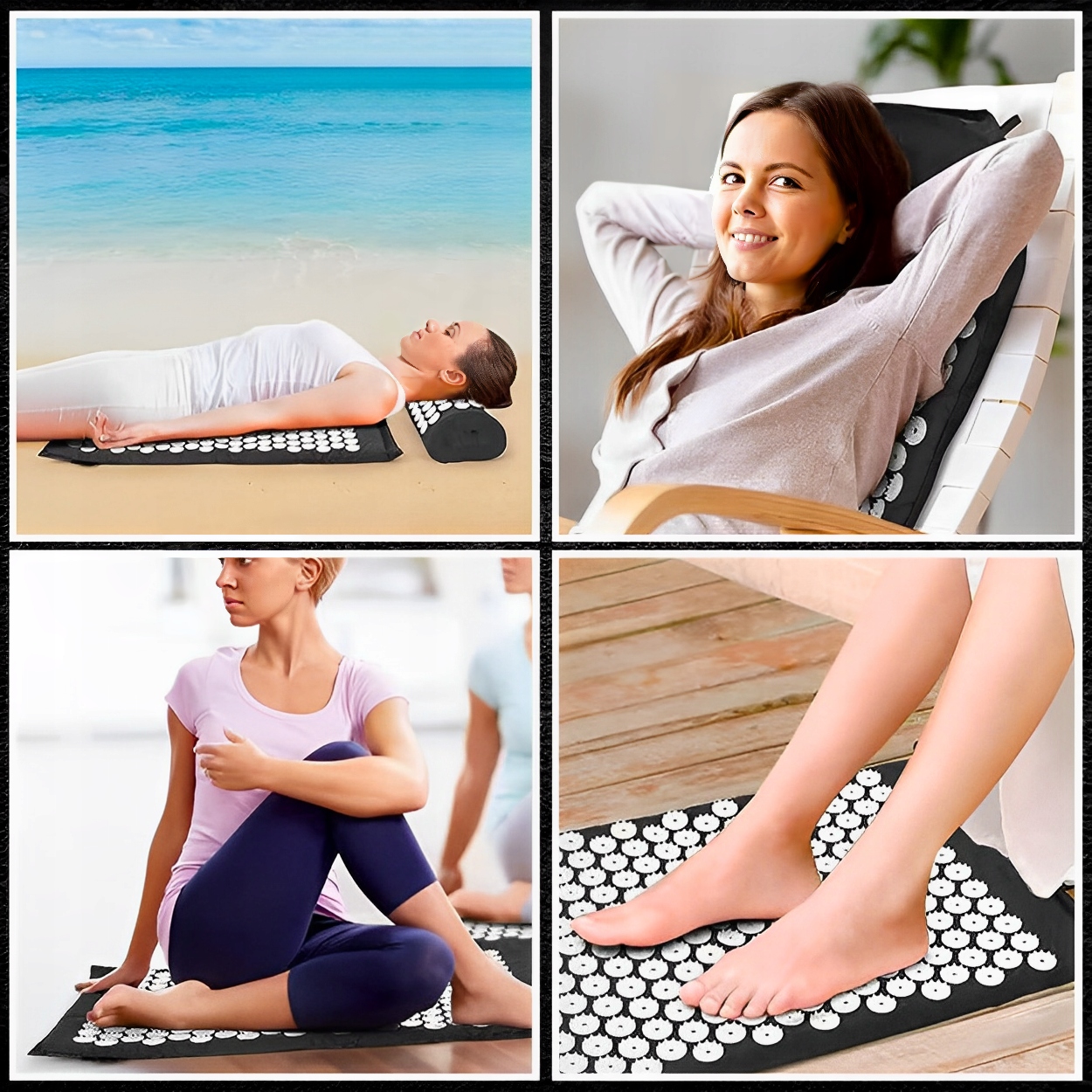 Преимуществом профессионального коврика для точечного массажа является его универсальное использование. Он подходит для физиотерапии, реабилитации и долгожданного отдыха. Способствует здоровью, расслаблению и уходу в следующих областях:
