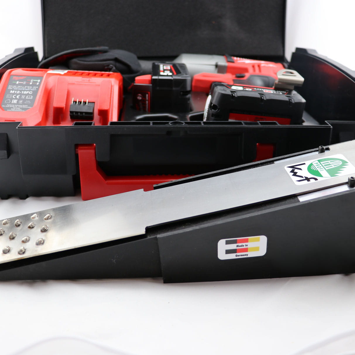 В этот практичный набор входят клин ValFast, конический клин ValQuick, ударный гайковерт Milwaukee, 2 аккумулятора 8,0 Ач + 12 аккумуляторов. , 0 Ач и специальное зарядное устройство Milwaukee.