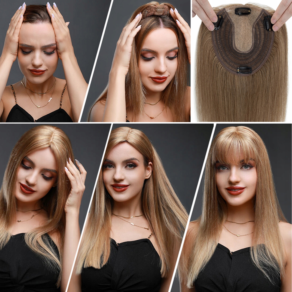 Заключите 35 -сантиметровый женский Tupper Topper 100% натуральные волосы светло -коричневые выпадают