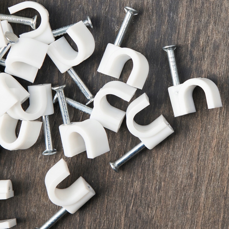Кабельные ручки с помощью закрепившего гвоздь на флопе к круглым кабелям -сечению -простые и быстрое установку проводов к стенам зданий. Закрепление осуществляется путем втягивания закаленного гвоздя в землю. Ручки этого типа используются, когда необходимо получить быстрое и надежное настройку, особенно в деревянных или аэрированных бетонных подложках