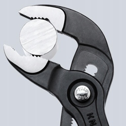 KNIPEX Cobra® — трубогубцы нового поколения. Больше не нужно тратить время на регулировку открытия челюсти до нужного размера. Просто поместите верхнюю челюсть на предмет, который вы держите, нажмите кнопку и потяните нижнюю челюсть. Это так просто!