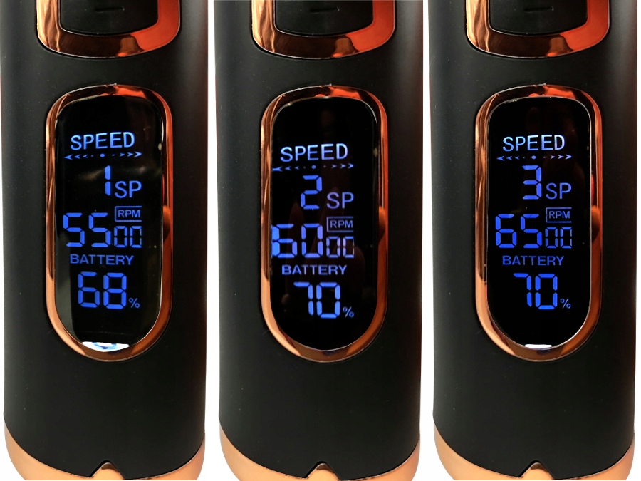 Цифровой дисплей показывает скорость работы бритвы и уровень заряда аккумулятора.