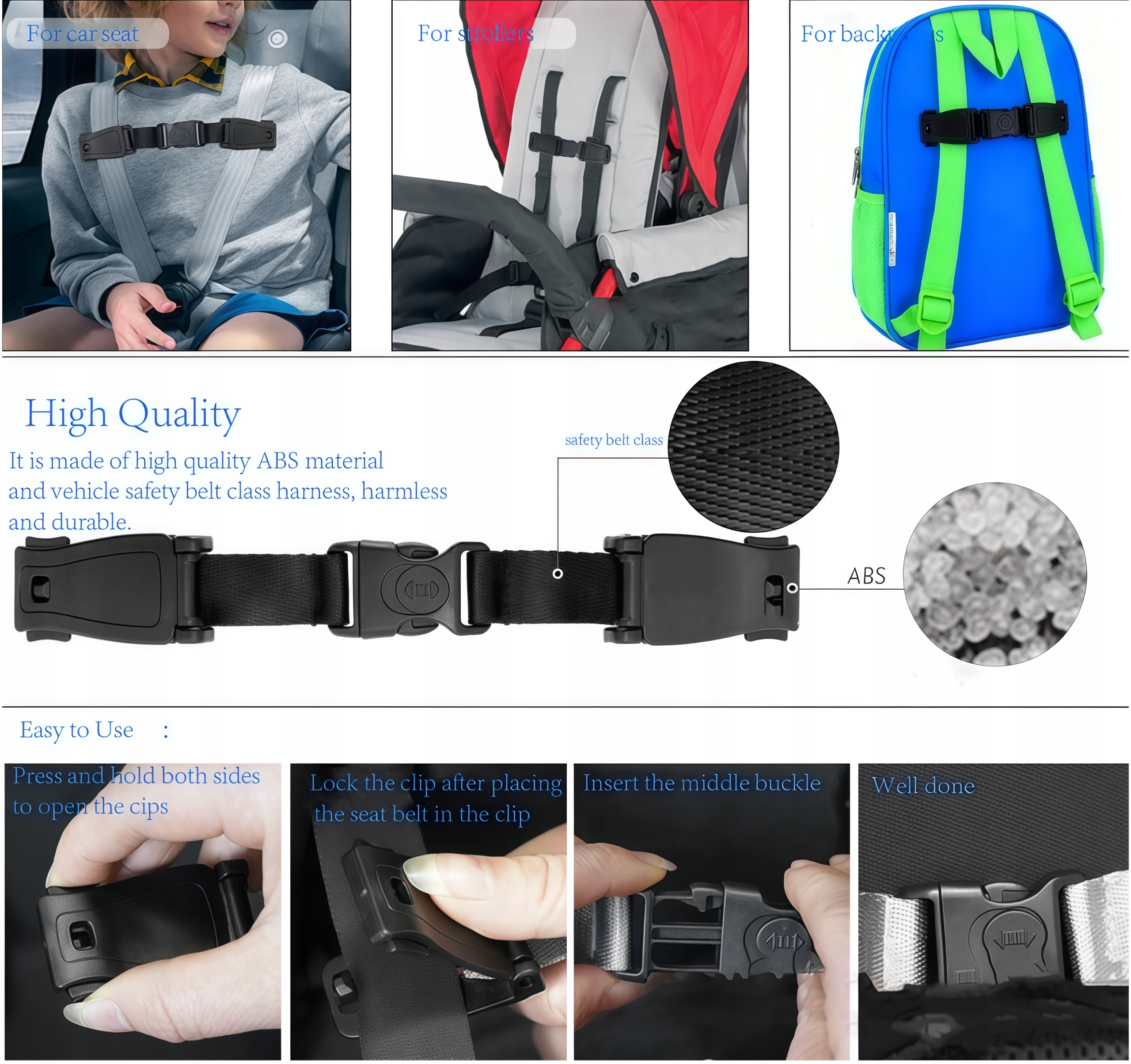 ✨【Нескользящее и устойчивое к растяжению, двойная безопасность】 Создано для активных малышей! Эффективно фиксирует ремни безопасности, предотвращая соскальзывание и скольжение. Он не позволяет детям тянуться или просовывать руки в зазоры, обеспечивая плотное прилегание ремня к телу и бескомпромиссную безопасность путешествия. Конструкция центральной пряжки тщательно предотвращает случайное разблокирование, позволяя активным малышам свободно выражать свои мысли, а родители наслаждаются душевным спокойствием на протяжении всего путешествия!