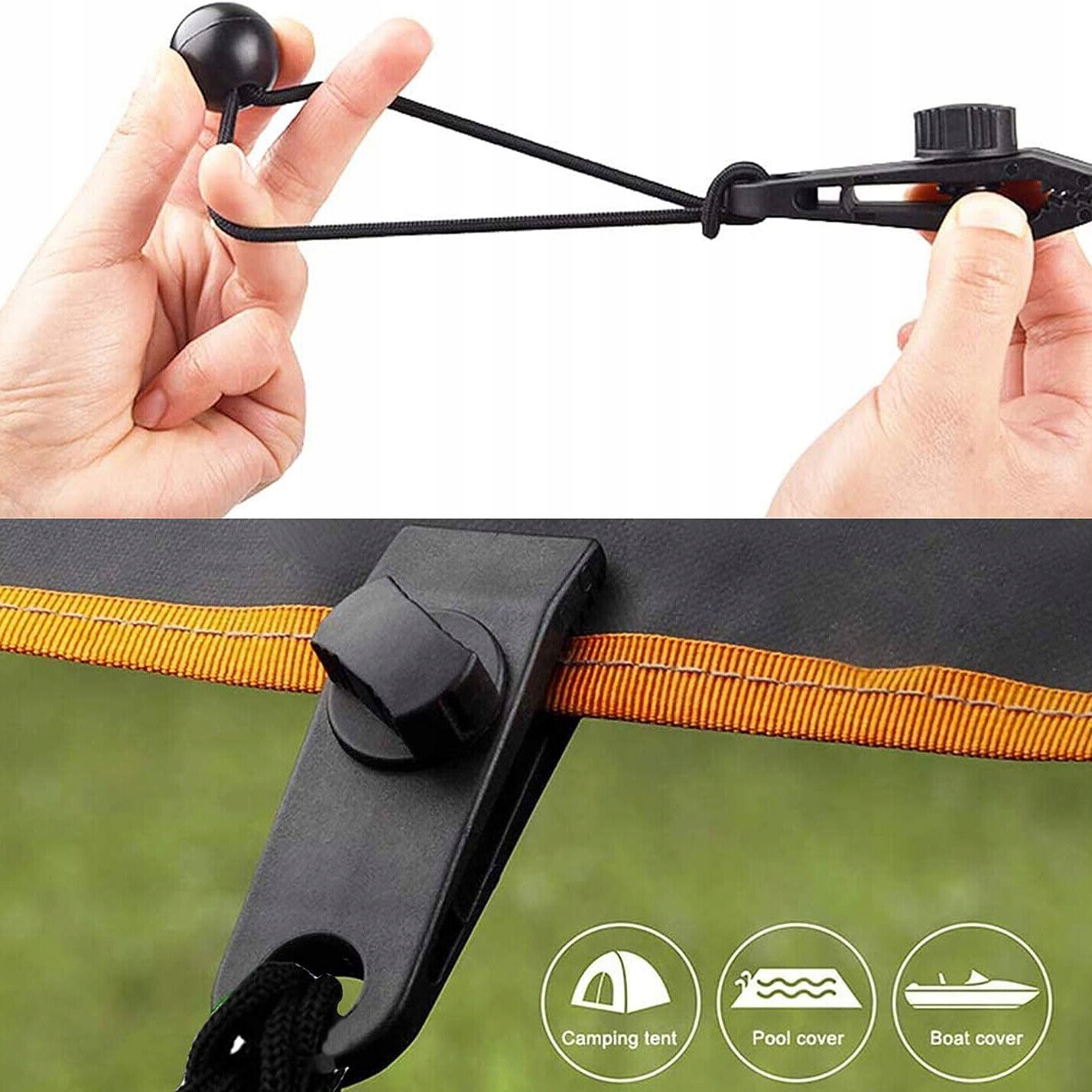 ✅ Широкое применение: Наш набор зажимов для брезента можно широко использовать в палатках, навесах, брезентах, флагах, шторах, одеялах, батутах, чехлах для лодок, навесах, покрытиях для бассейнов, костюмах для домашнего использования и т. д. на открытом воздухе, во временных укрытиях или любых тканевых покрытиях, требующих дополнительных точек опоры.