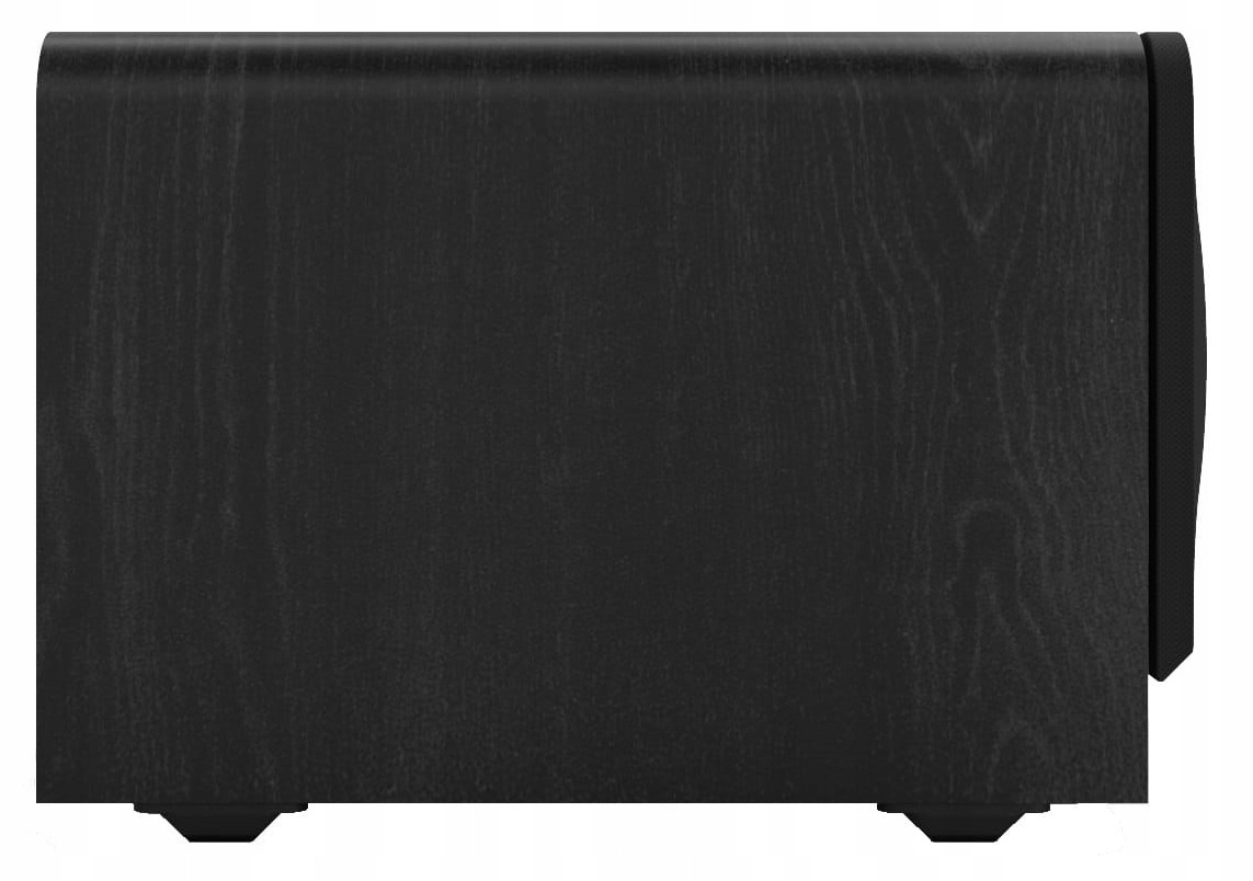 Амортизирующие резиновые ножки, стальные стойки решетки и тканевая решетка придают сабвуферу элегантный вид.