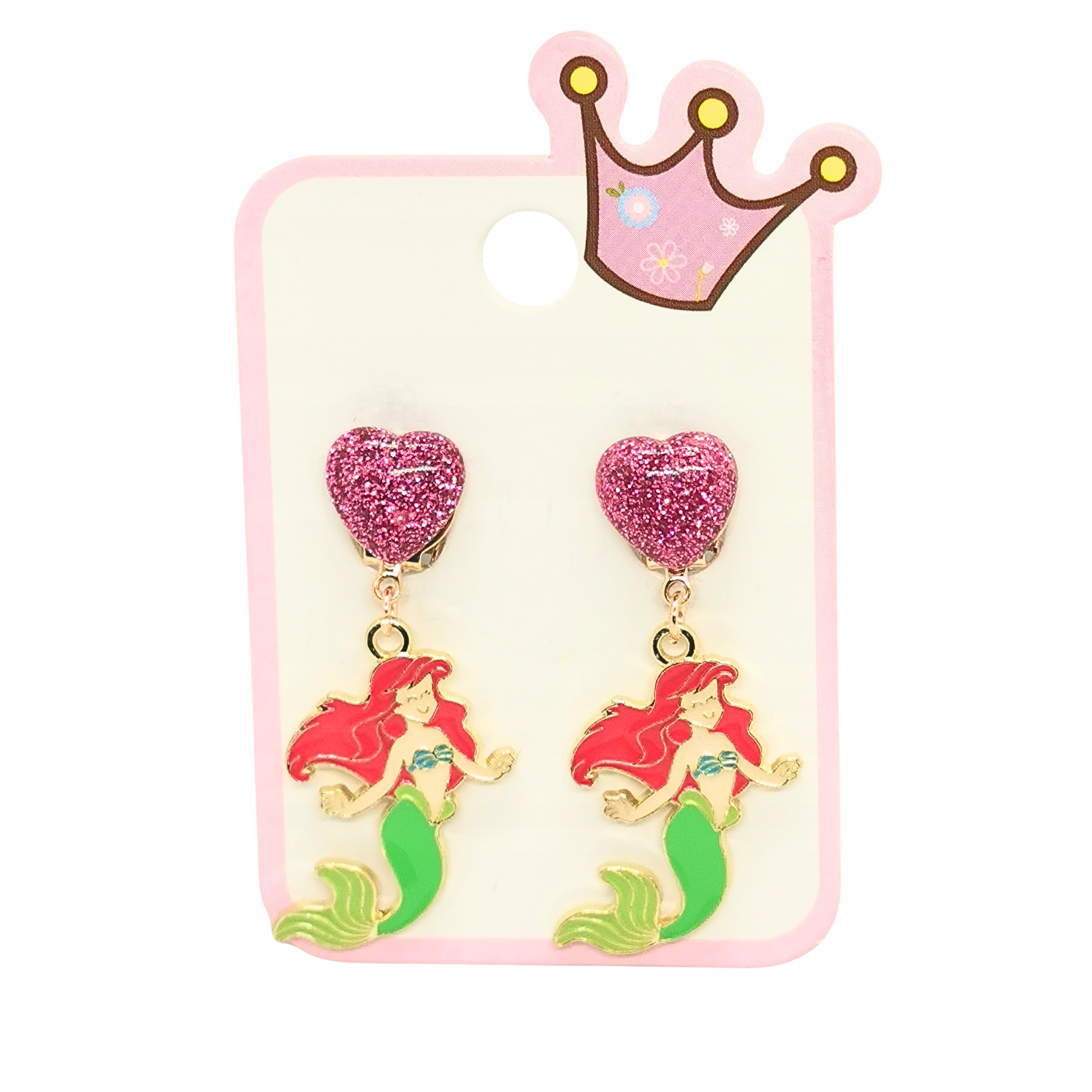 Клипсы украшены блестящими сердечками и подвесками с изображением русалки.