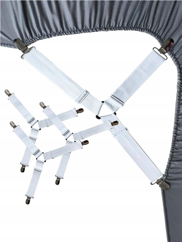 В упаковке 4 крепления для простыней, по одному на каждый угол кровати.