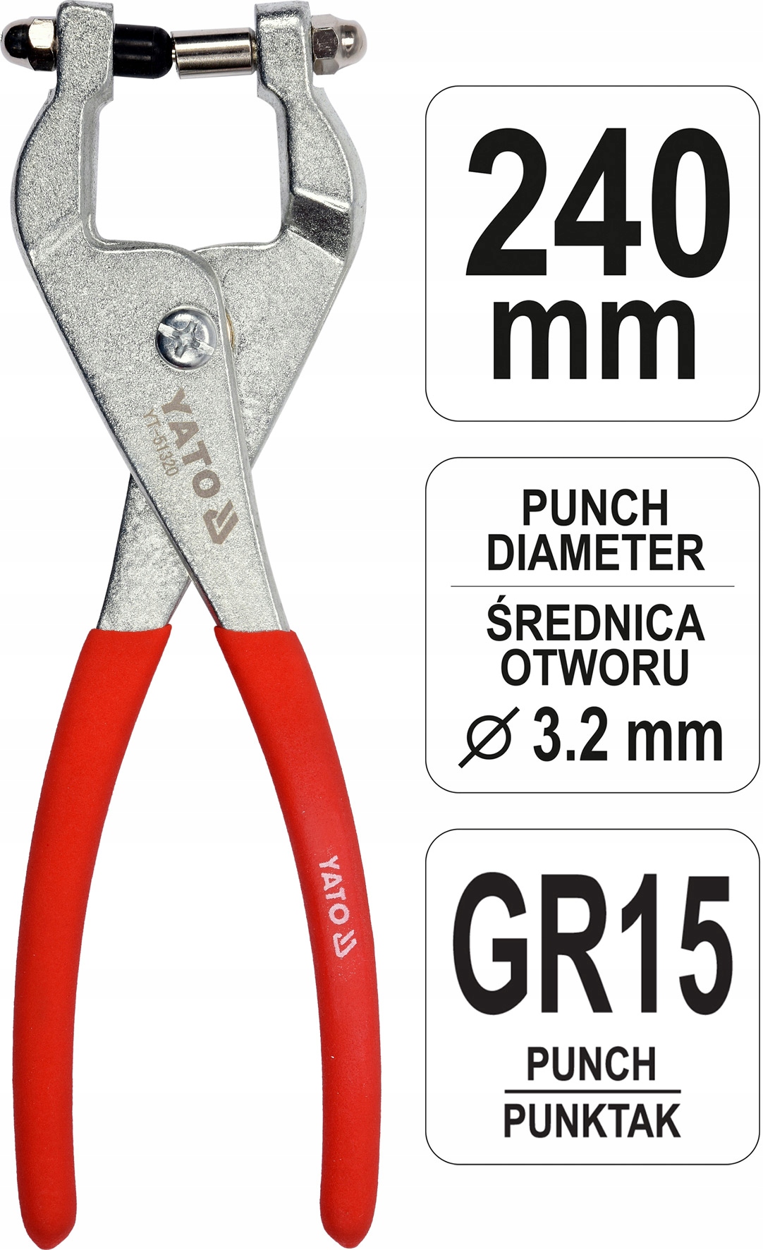 Пробивные клещи для листового металла YATO 240 мм (YT-51320) изготовлены из материалов высочайшего качества, что обеспечивает не толькоисключительную долговечность, но идолговечную службу жизненные инструменты. Корпус плоскогубцев выкован из стали, перфорирующий штифт диаметром 3,2 мм изготовлен из прочной подшипниковой стали GR15, а эргономичная ручка изготовлена из специального b>нескользящего ПВХ материала. обеспечивает надежный захват и удобство использования, сводя к минимуму риск выскальзывания инструмента во время работы.