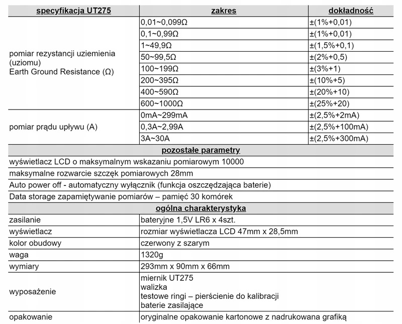 ПРОФЕССИОНАЛЬНЫЙ ИЗМЕРИТЕЛЬ СОПРОТИВЛЕНИЯ ЗАЗЕМЛЕНИЯ UT275 UNI-T