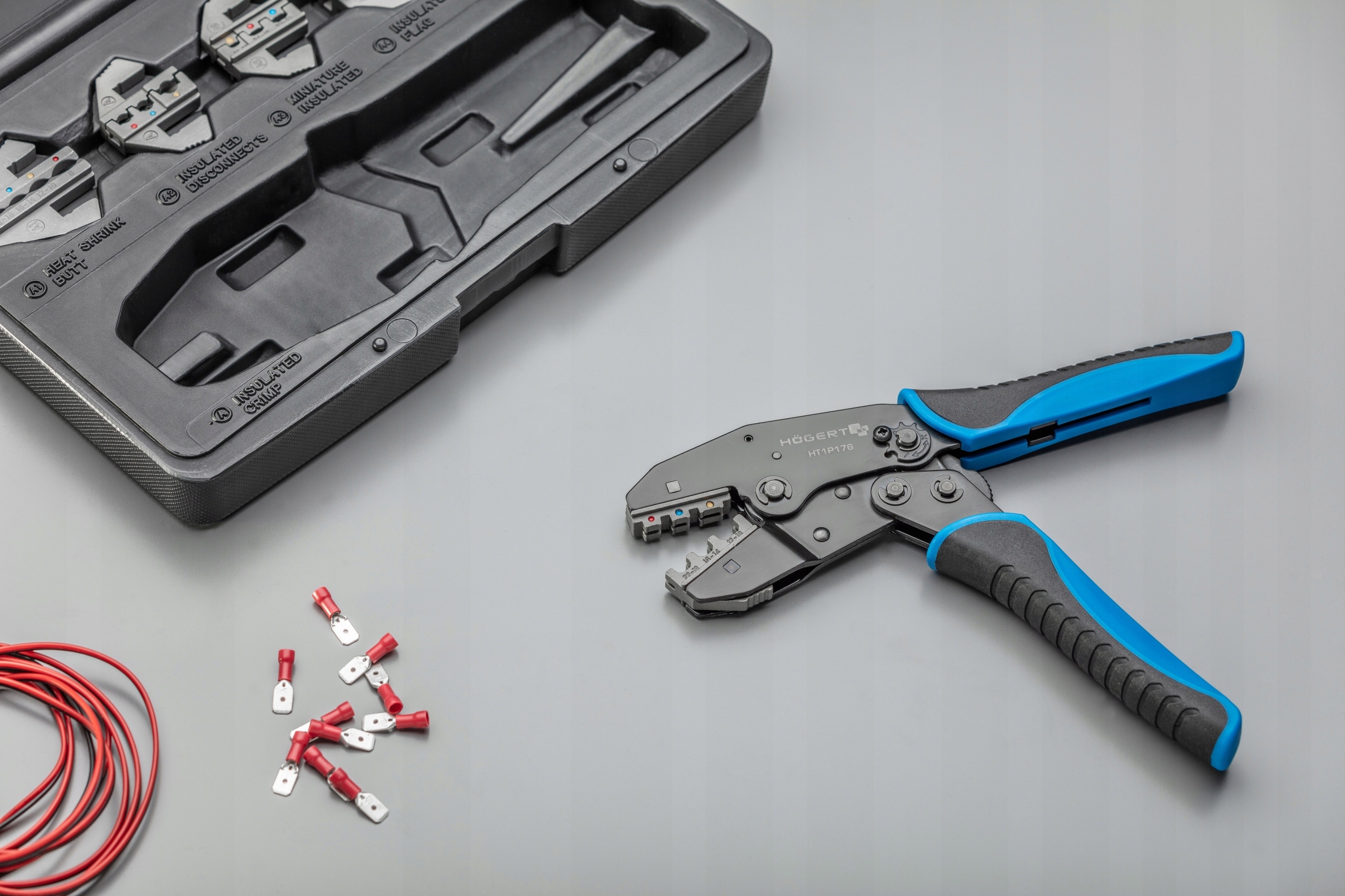 - храповый механизм гарантирует точные соединения, повторяемость обжатия клемм на проводе,