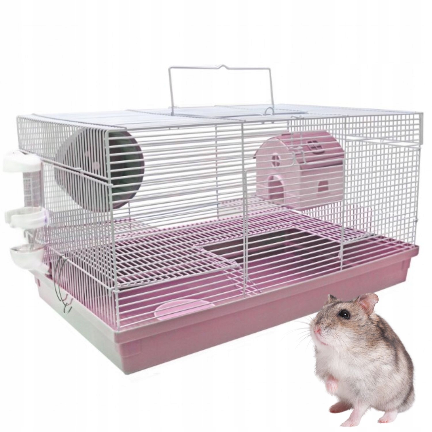 БЕЛАЯ/РОЗОВАЯ КЛЕТКА ДЛЯ ГРУЗУНОВ, ХОМЯКОВ, МЫШЕЙ, песчанок С ОБОРУДОВАНИЕМ
