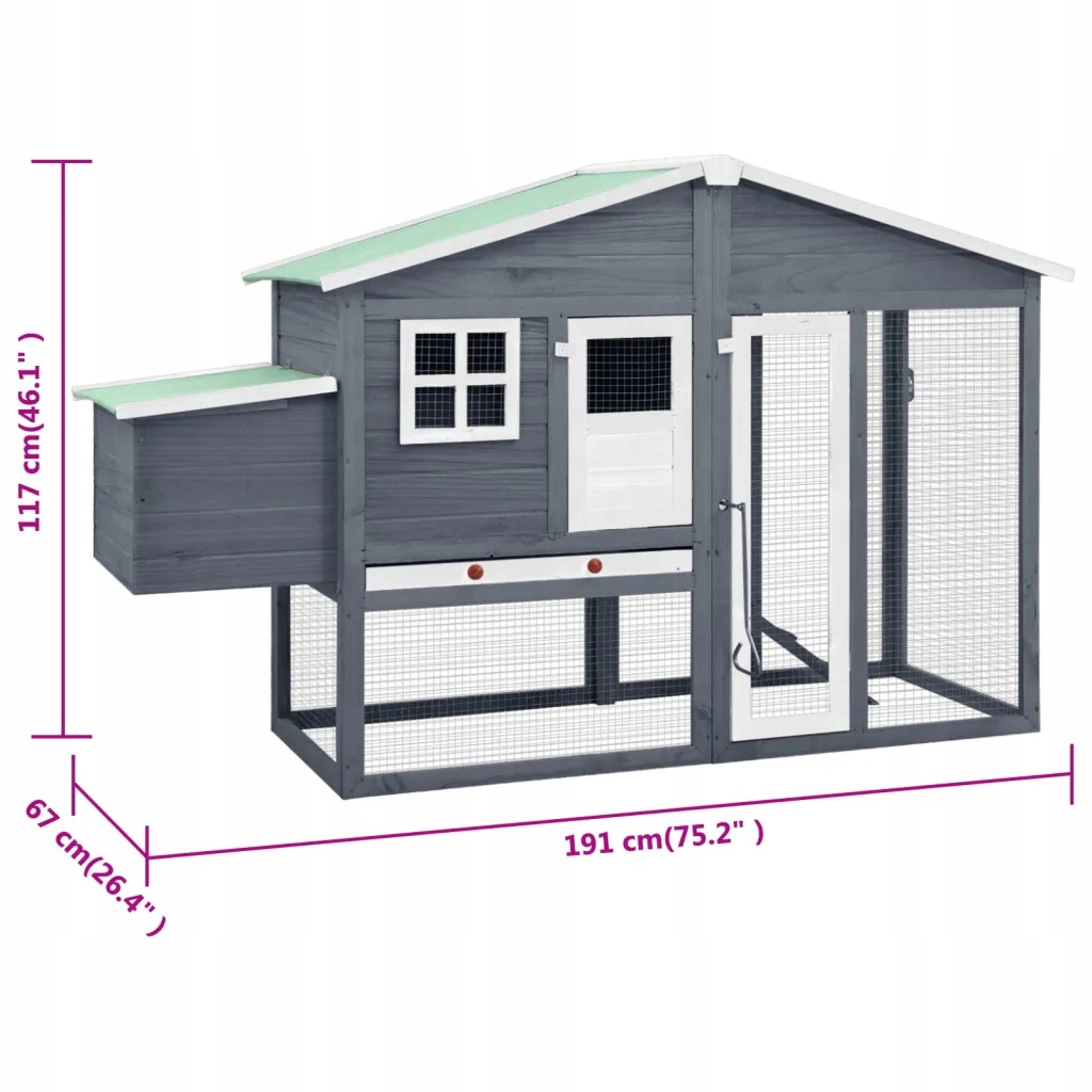 Клетка для кур с откидной крышей, 191х67х117 см, серо-белая