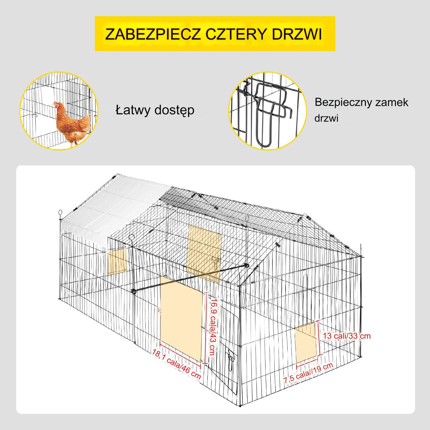 Этот курятник с прочным железным каркасом с порошковым покрытием предназначен для защиты ваших животных от побегов и любых опасностей. Внутри клетки – безопасное пространство, где ваши питомцы будут чувствовать себя свободно и комфортно.