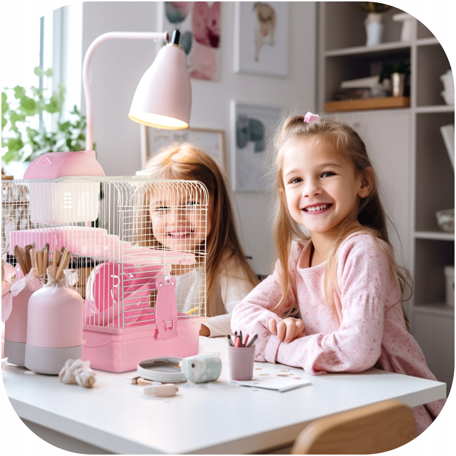 КЛІТКА ДЛЯ МАЛОГО І ВЕЛИКОГО РОЗМІРУ L РОЖЕВА ПОВНИЙ КОМПЛЕКТ