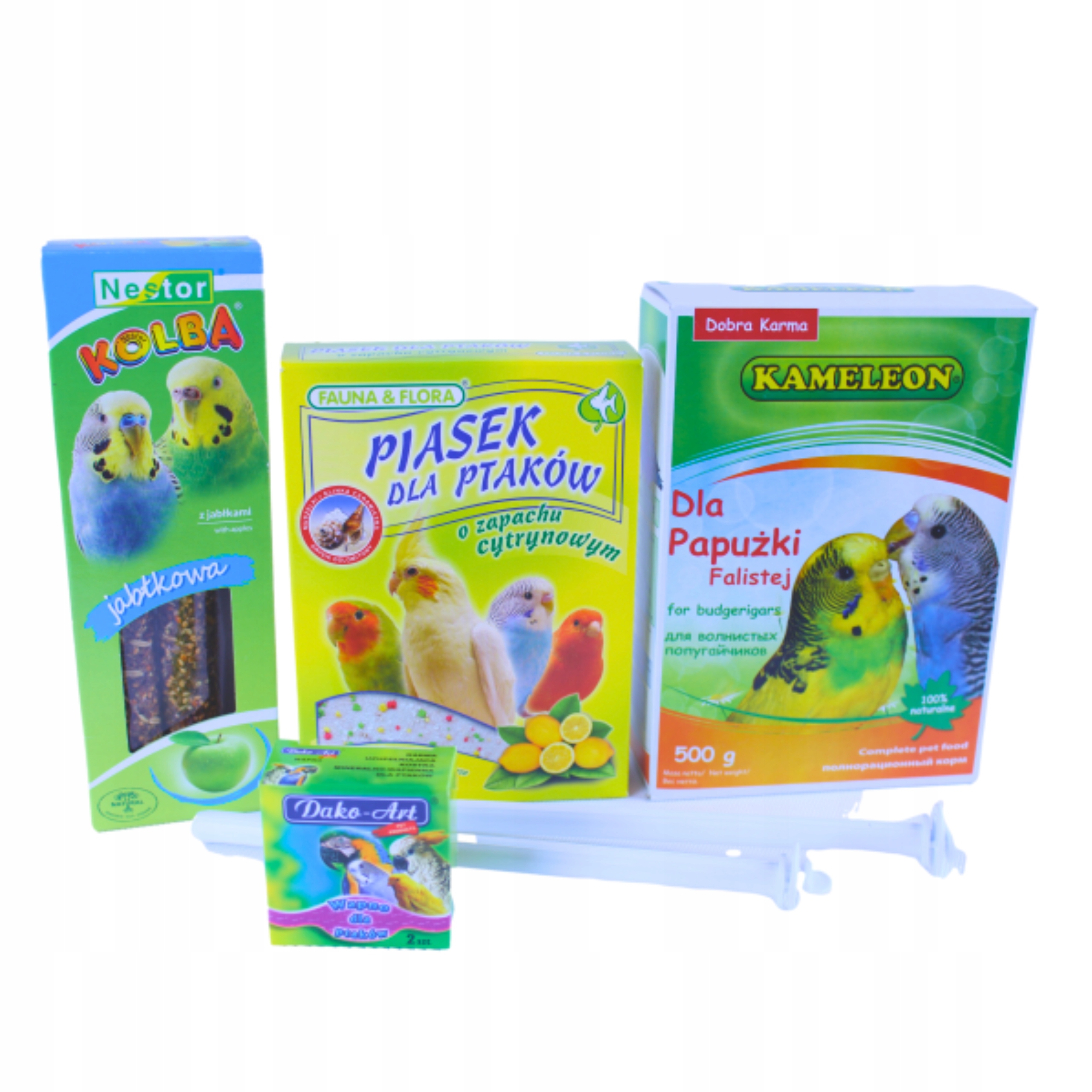 В КОМПЛЕКТ ВХОДЯТ МЕТАЛЛИЧЕСКАЯ КЛЕТКА ДЛЯ ПТИЦ с выдвижным лотком, кормушка и поилка, корм (500г) - на выбор (для волнистого попугая, канарейки, зебры), ароматизированные фляжки, известь для птиц , 2 палочки и ароматный песок.