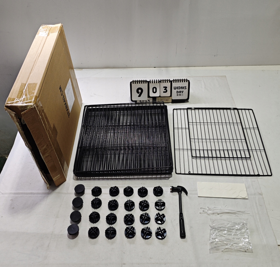 12 панелей из проволочной сетки с 12 противоскользящими ковриками. Расстояние между люверсами: 1,5 см.