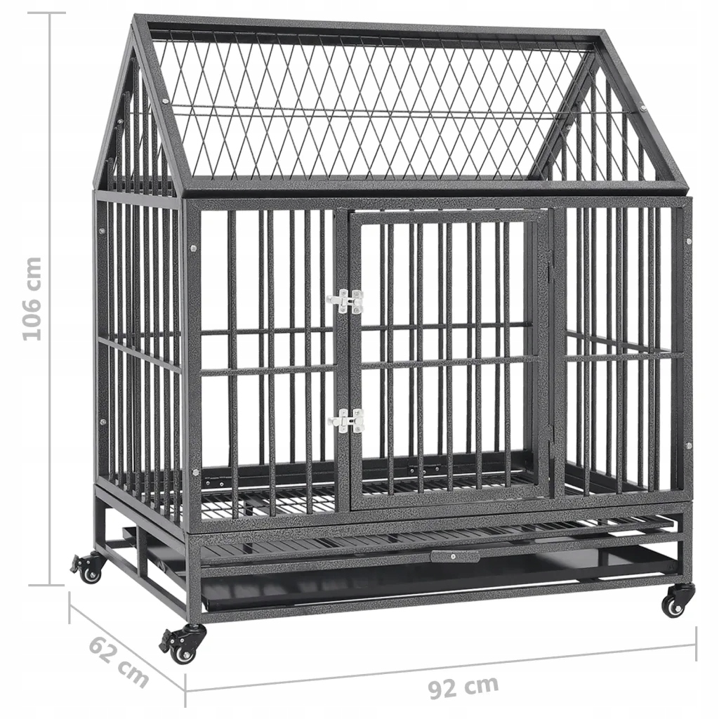 Клетка для животных с крышей, 92х62х106 см, черно-серебристая
