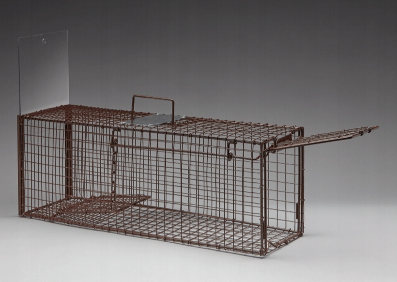 Очень долговечный с проволочным полом. У него есть кольцо простого механизма, закрывающего входную дверь, который в этой модели открывается снаружи.