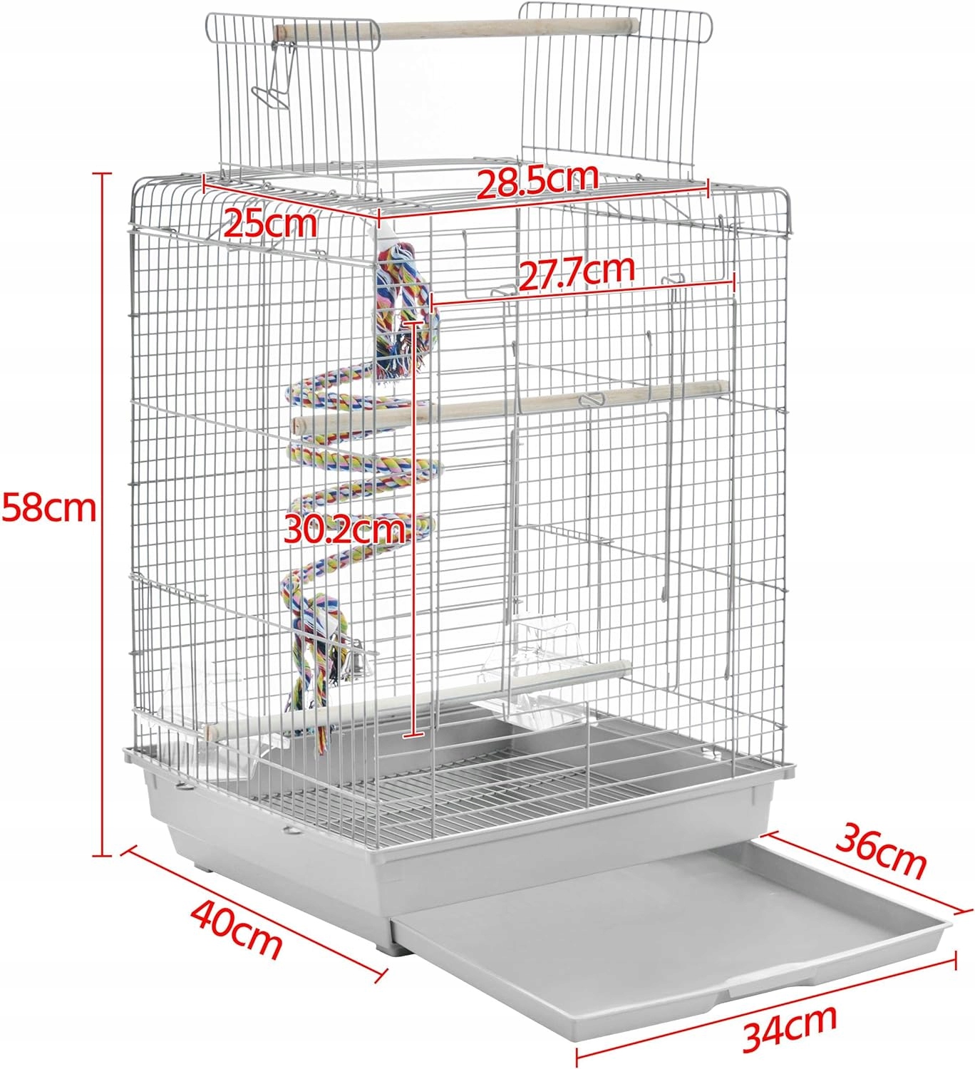 - Поддон для мусора и поддон для мусора: эта птичья клетка оснащена поддоном для мусора и выдвижным поддоном, что делает вольер легким и простым в уходе. чисто.