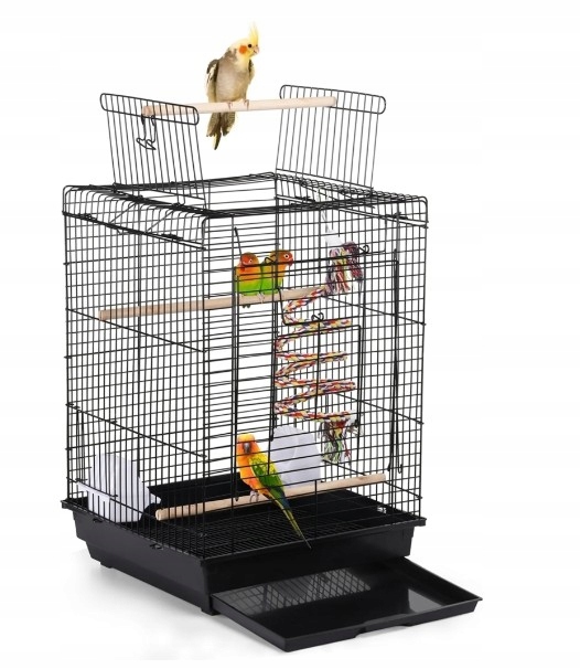 Дополнительное отверстие: дополнительное отверстие с размерами 27,7 × 25 см (длина × ширина) сверху также обеспечивает более легкий доступ к кормлению и очистке. Грязный поднос и выдвижной грязный поднос, благодаря тому, что этот вольер для птиц легкий и легко чистить.