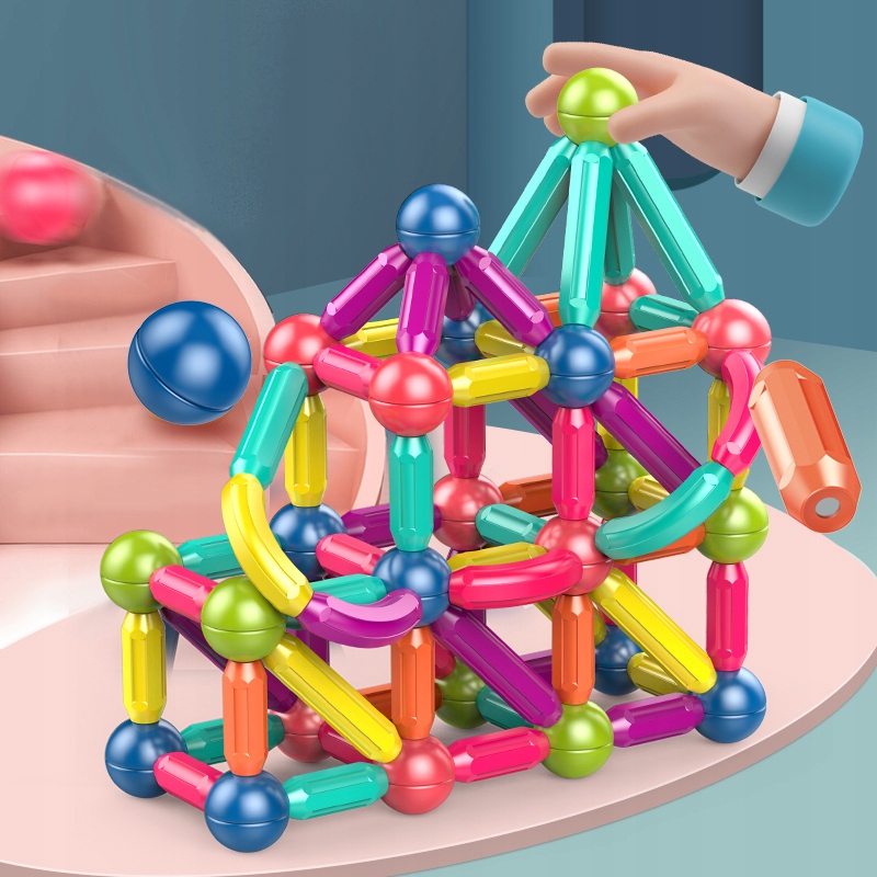 KLOCKI MAGNETYCZNE 64 ELEMENTY KREATYWNA ZABAWKA DIY MAGNETIC STICKS