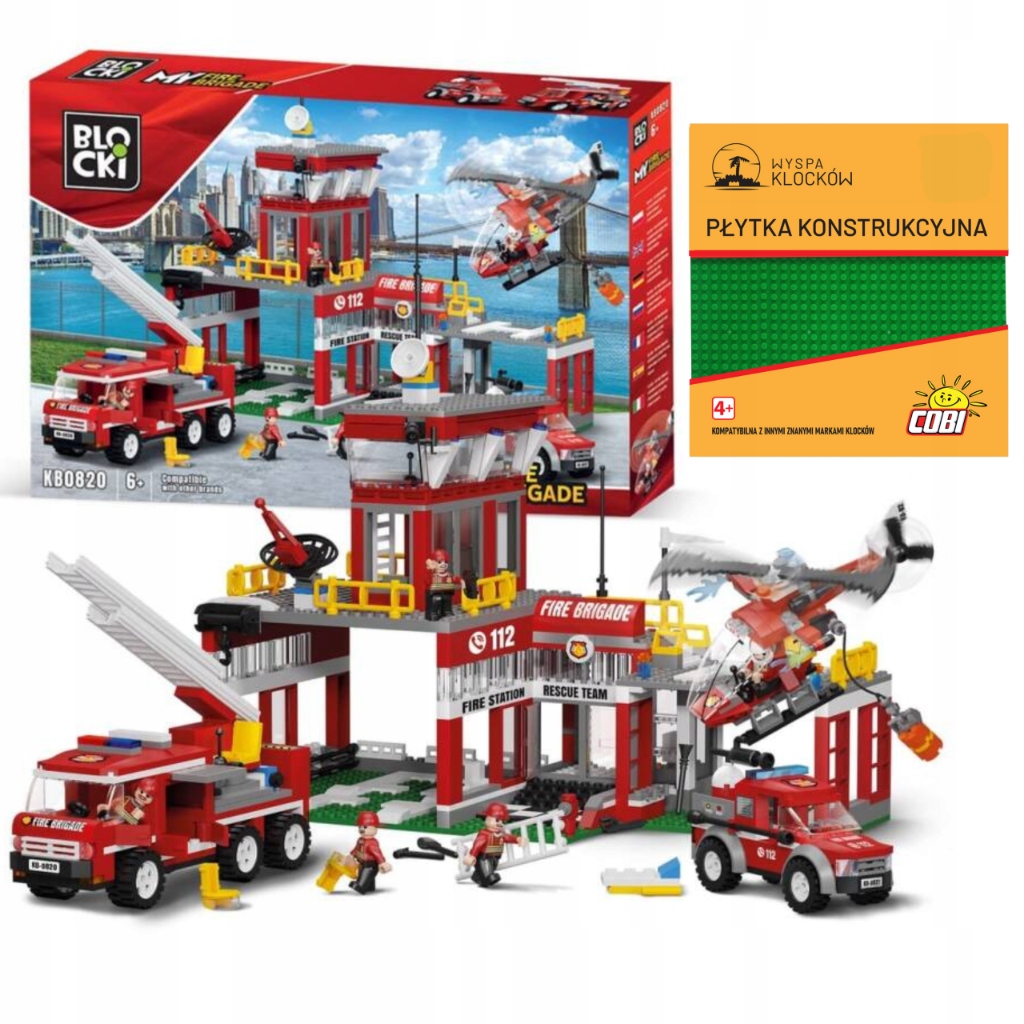 KLOCKI REMIZA STRAŻACKA STRAŻ POŻARNA WÓZ STRAŻACKI PŁYTKA COBI 841 EL.