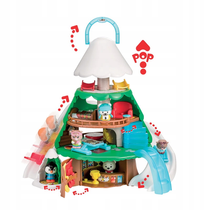 А очень большое альпийское шале в форме заснеженного В комплект ёлки входят: один плюшевый мишка Скотт и 9 аксессуаров — стол для пикника, 2 шезлонга, кресло, стол, чашка, пара лыж, сноуборд и санки. Для сборки игрушки необходим взрослый человек. Игрушка для детей от 18 мес. Рекомендуем протирать поверхность игрушки мыльным раствором и влажной тряпкой.
